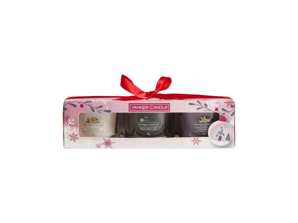 Yankee Candle Vánoční dárková sada Votivní svíčky ve skle růžový design, 3 x 37 g